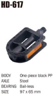 Педаль детская HONGDING HD-617, полипропиленовый корпус, чёрный, стальные подшипники, ось 4S, с рефлектором, 1 пара. Резьба 1/2 дюйма /уп100/