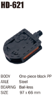 Педаль детская HONGDING HD-621, полипропиленовый корпус, чёрный, стальные подшипники, ось 4S, с рефлектором, 1 пара. Резьба 1/2 дюйма /уп100/