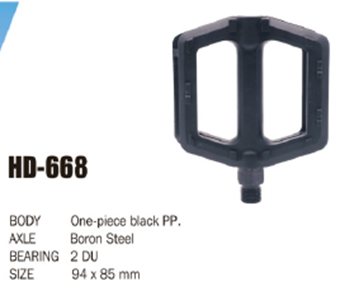 Педаль детская HONGDING HD-668, полипропиленовый корпус, чёрный, стальные подшипники, ось 4S, с рефлектором, 1 пара. Резьба 1/2 дюйма /уп100/