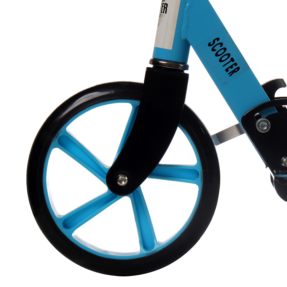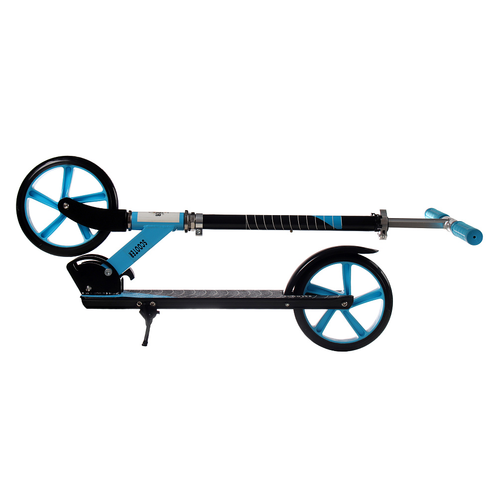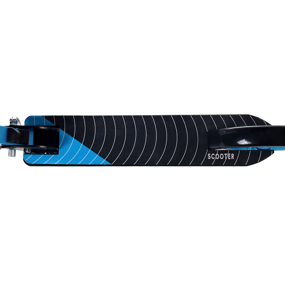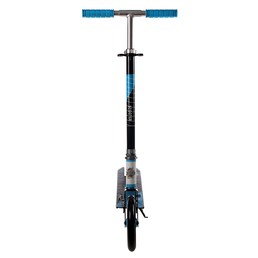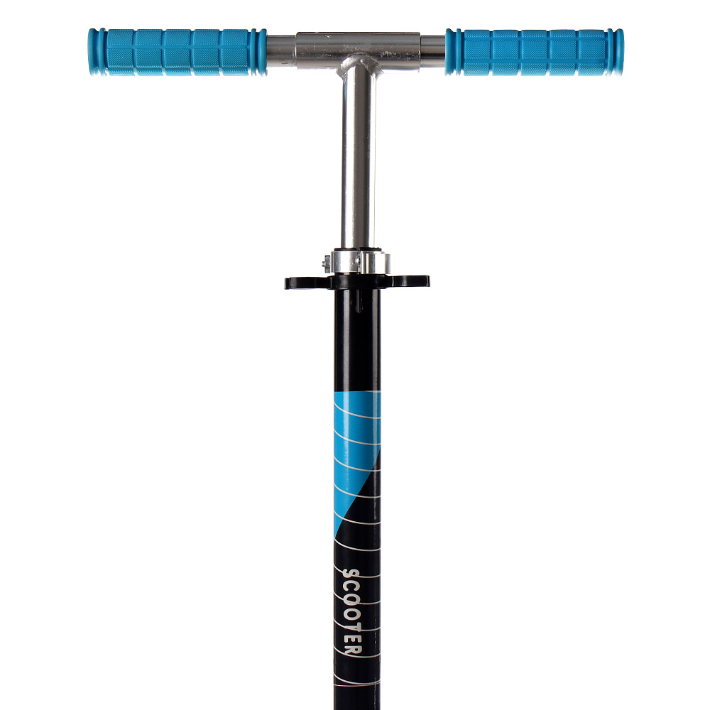 Самокат с Т–образной телескопической ручкой, регулируемой по высоте до 97 см и полиуретановыми колесами.