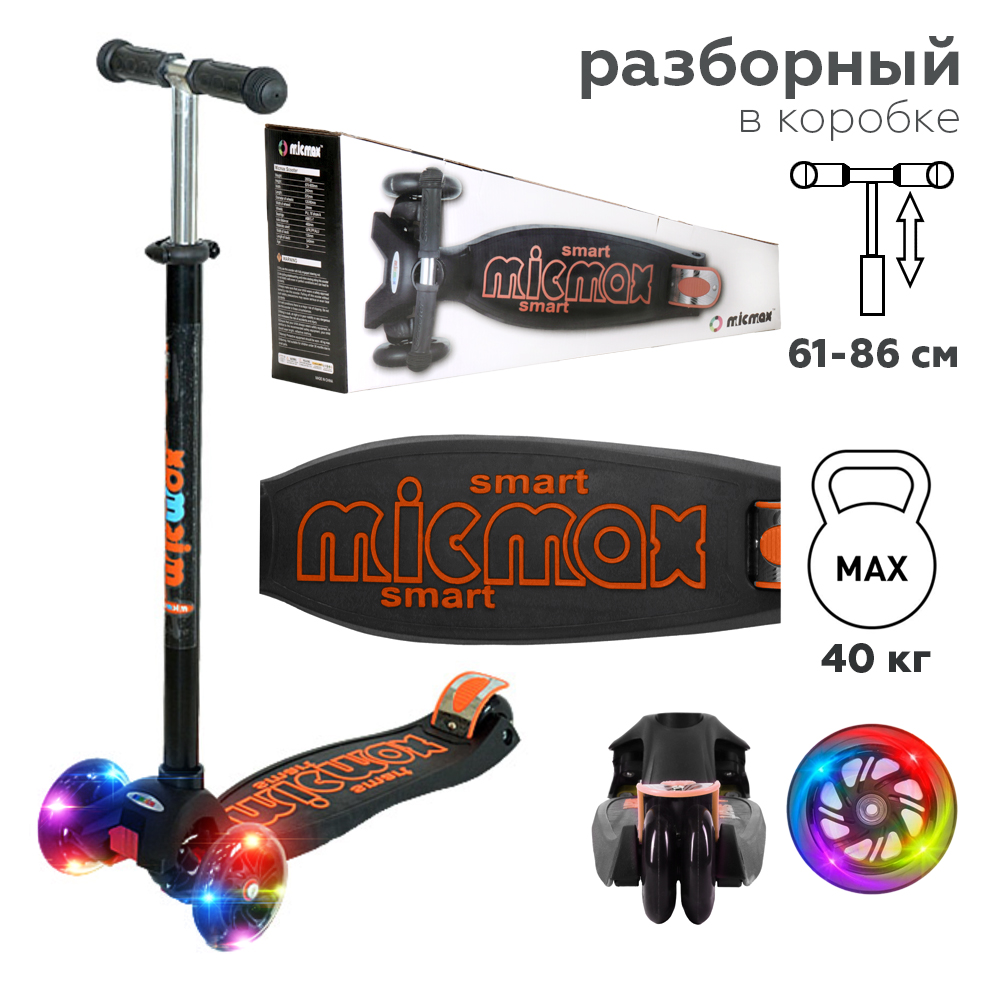 Максимальная нагрузка на оси городского самоката – 40 кг.