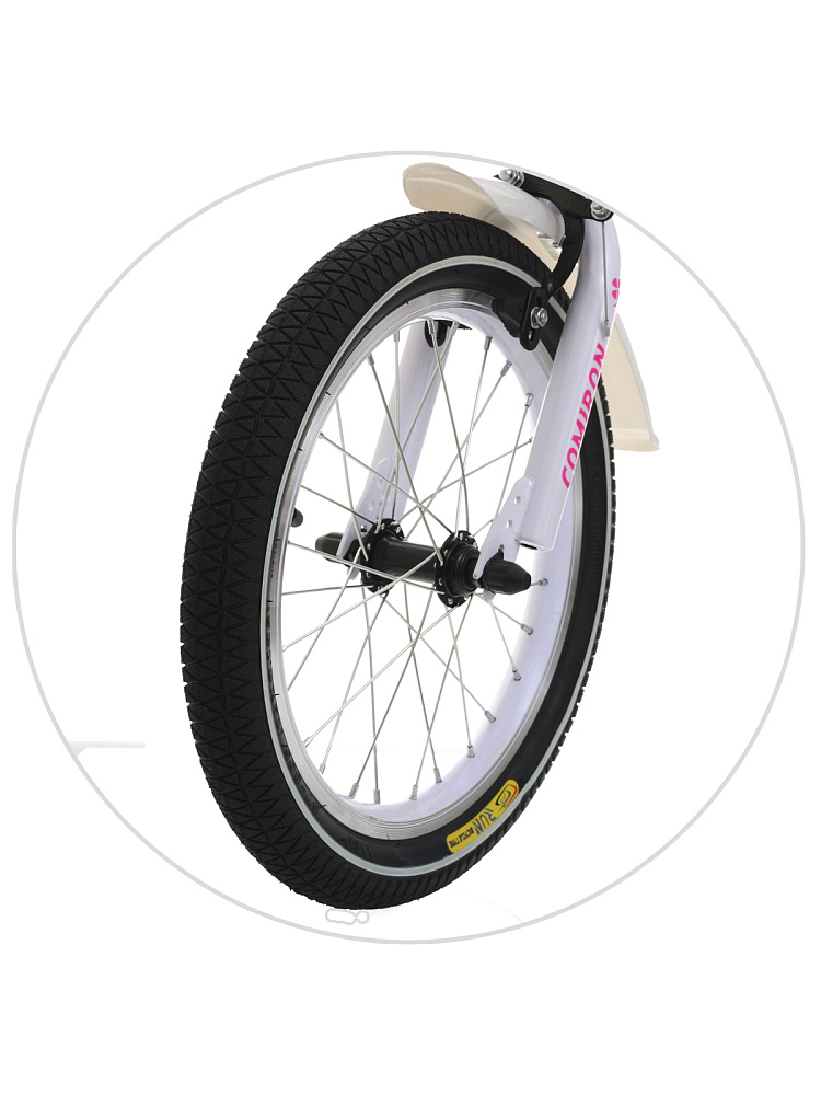 Покрышки из качественной резины обеспечат надёжное сцепление с дорогой. Приставные колёса позволят ребёнку быстро безопасно научиться кататься, а когда он подрастёт, вы быстро отрегулируете высоту седла благодаря эксцентрику.