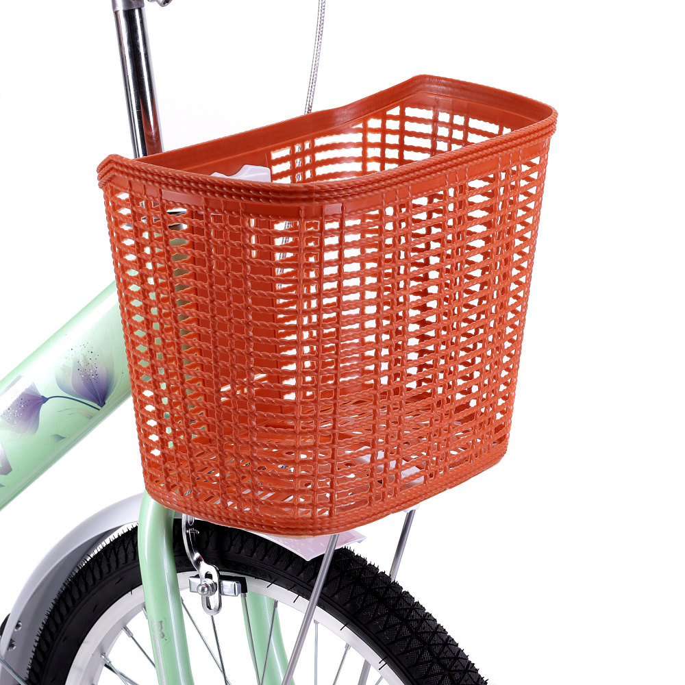 • Корзина: Вместительная пластиковая корзина, стилизованная под плетеную, установлена на опоры для увеличения грузоподъемности.