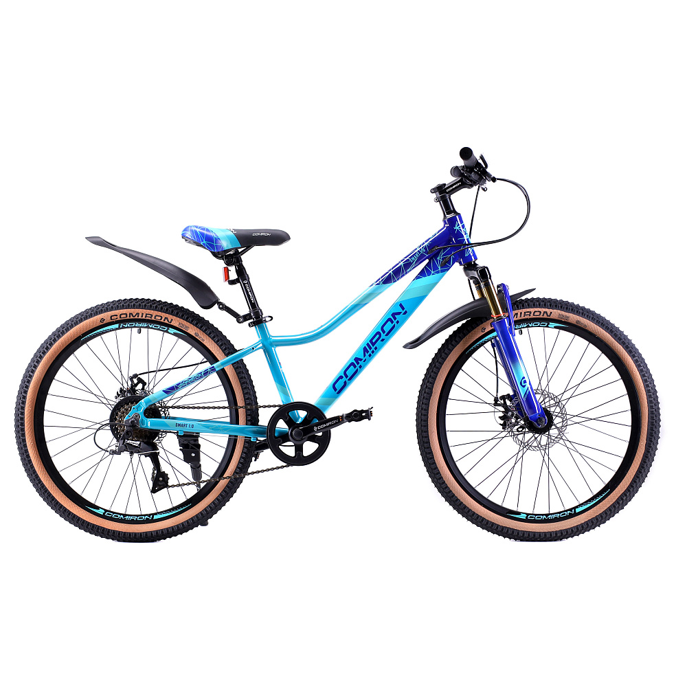 Велосипед COMIRON SMART 24”– комфортный детский велосипед с заниженной алюминиевой рамой, 7-скоростной трансмиссией, амортизационной вилкой, дисковыми тормозами, внутренней проводкой тросов, крыльями и подножкой в комплекте.