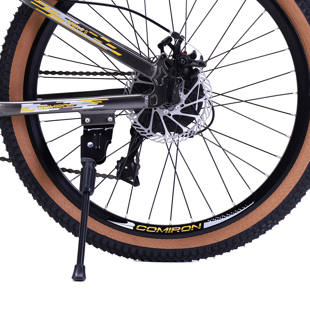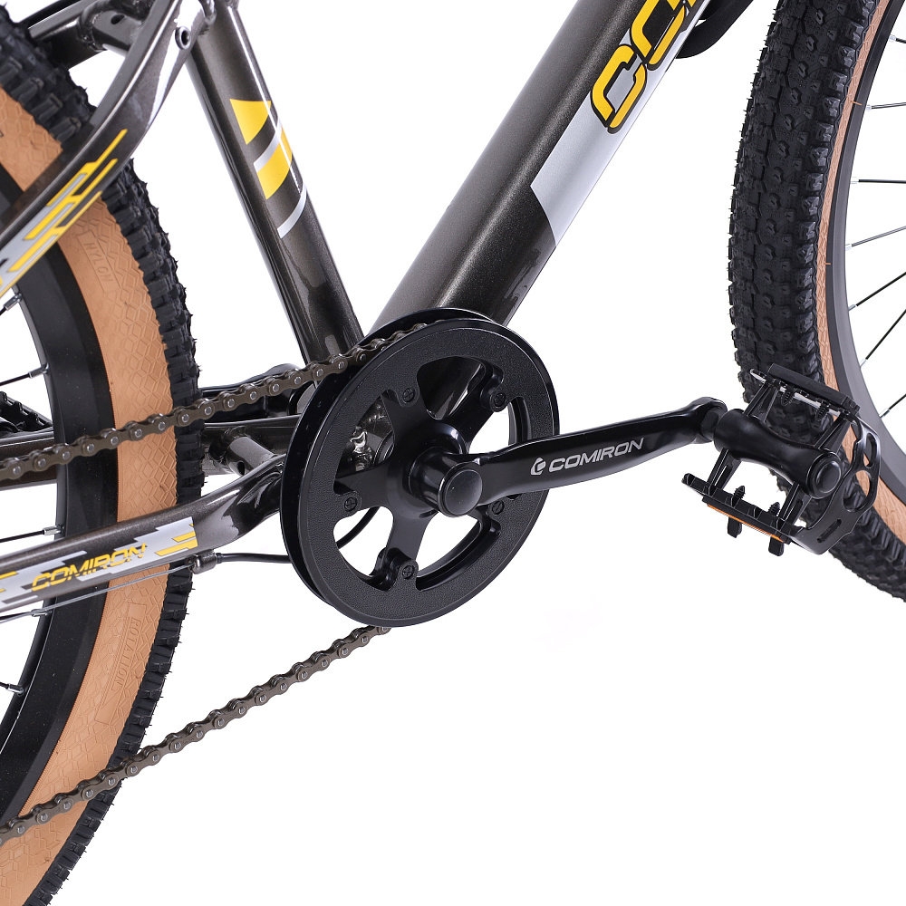 - Покрышки: Фирменные COMIRON, ширина 2,35” с модным кофейным оттенком боковин и выраженным протектором имеют отличный накат по асфальту и отлично держат на грунте