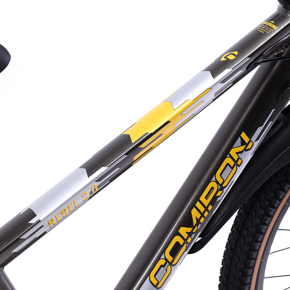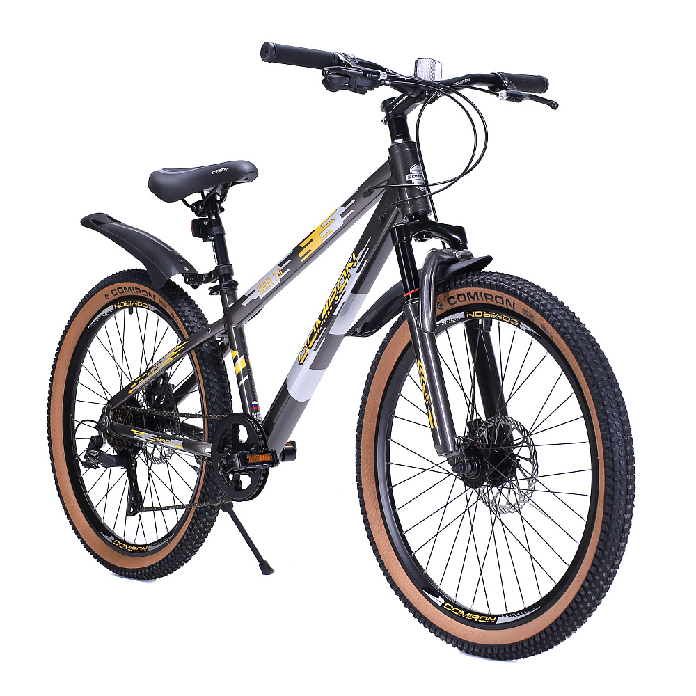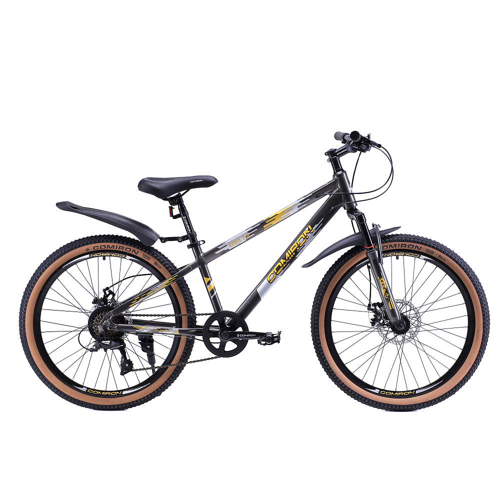 Велосипед 24" рама 13" 7sp COMIRON REBEL– подростковый горный велосипед на алюминиевой раме с 7-скоростной трансмиссией, дисковыми тормозами, амортизационной вилкой и «супергеройским» дизайном.