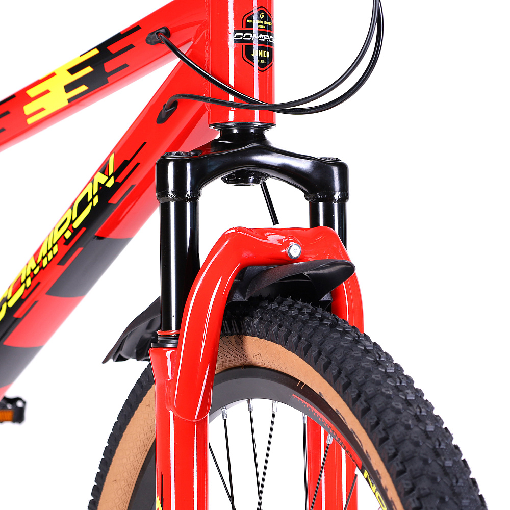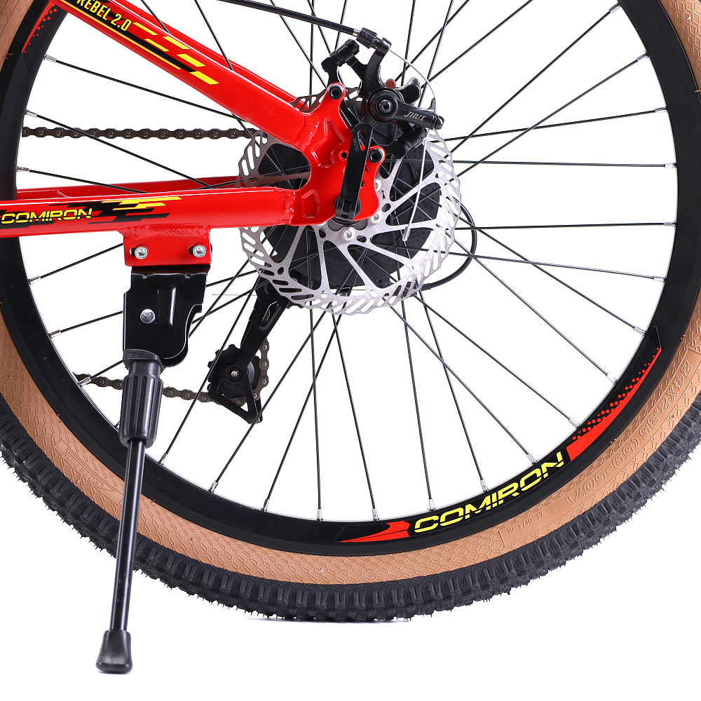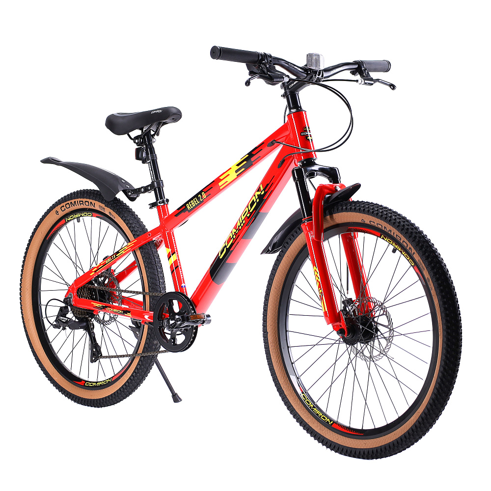 Велосипед 24" рама 13" 7sp COMIRON REBEL– подростковый горный велосипед на алюминиевой раме с 7-скоростной трансмиссией, дисковыми тормозами, амортизационной вилкой и «супергеройским» дизайном.