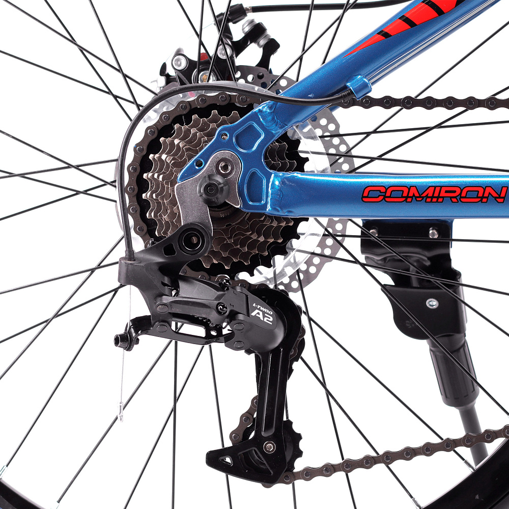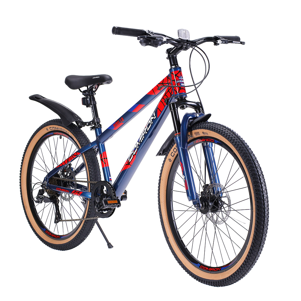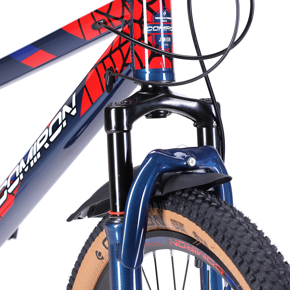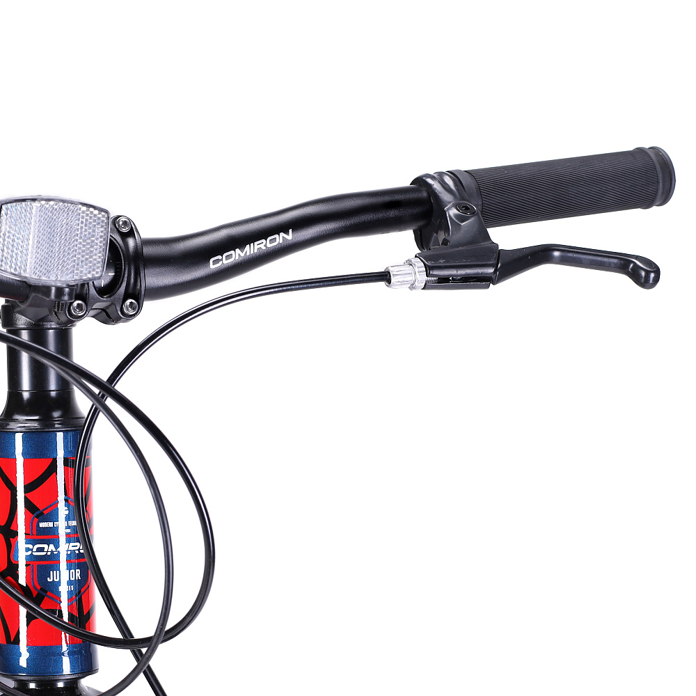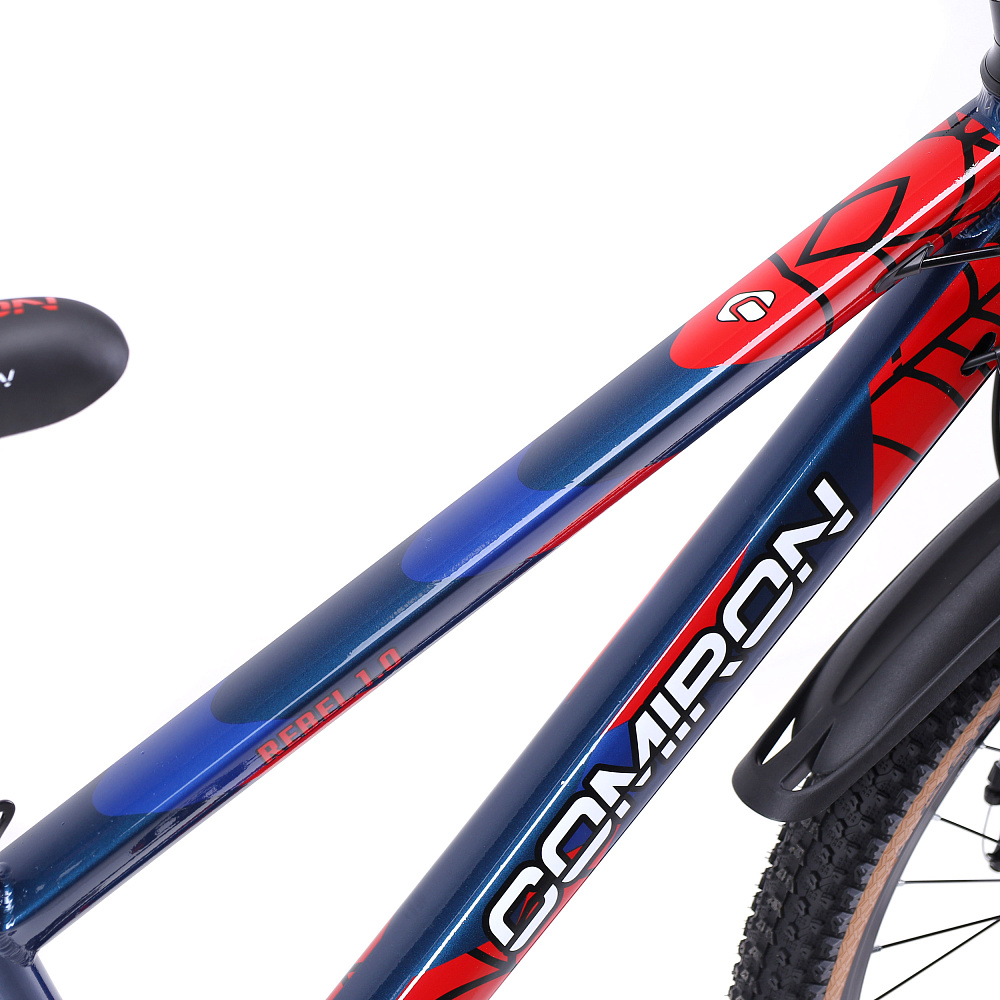 Велосипед 24" рама 13" 7sp COMIRON REBEL– подростковый горный велосипед на алюминиевой раме с 7-скоростной трансмиссией, дисковыми тормозами, амортизационной вилкой и «супергеройским» дизайном.