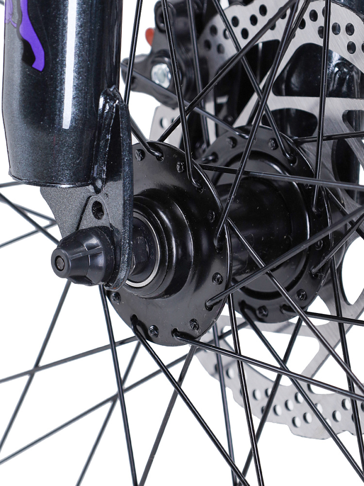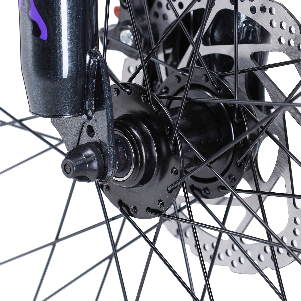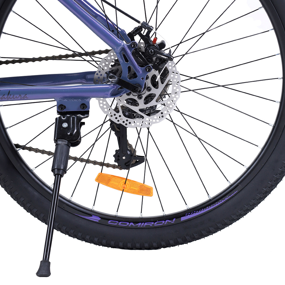 - Надежность и управление: Дисковые механические тормоза обеспечивают отличное торможение и контроль, а втулки на промышленных подшипниках гарантируют плавное качение. Широкая универсальная резина уверенно держит дорогу как на асфальте, так и на грунтовых тропинках.