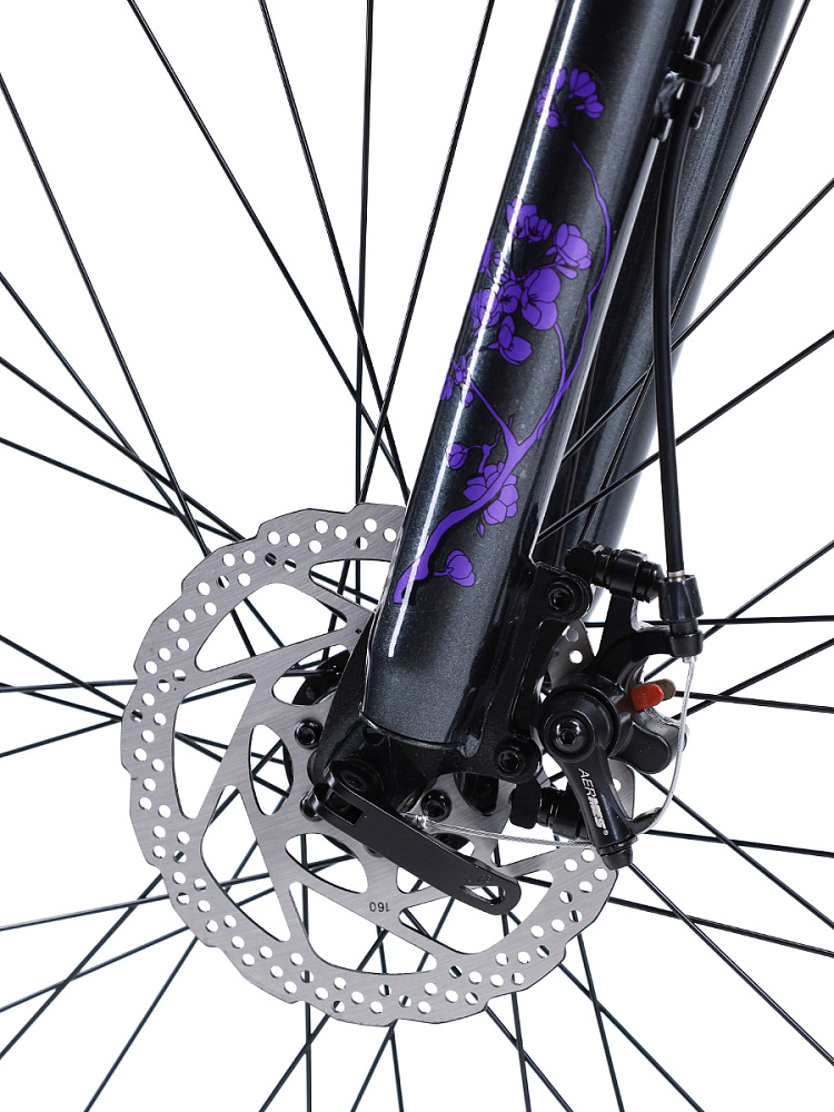 - Тормоза: дисковые, механические mechanical disc brake с роторами 160 мм, тормозные ручки алюминиевые