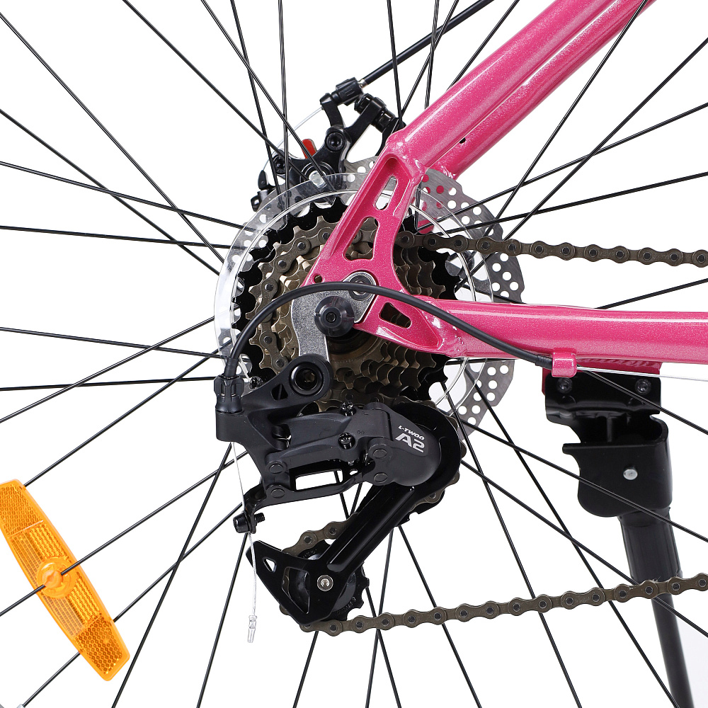 - Комфорт и удобство: Широкое мягкое седло и специальная геометрия рамы учитывают анатомию девушек, обеспечивая максимальный комфорт во время велопрогулок по городу или парку.