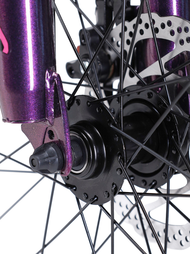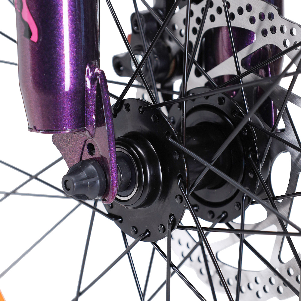 - Надежность и управление: Дисковые механические тормоза обеспечивают отличное торможение и контроль, а втулки на промышленных подшипниках гарантируют плавное качение. Широкая универсальная резина уверенно держит дорогу как на асфальте, так и на грунтовых тропинках.
