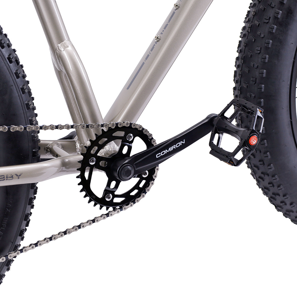 COMIRON CHUBBY  - это фэтбайк на алюминиевой раме и с обвеской от нового мирового производителя L-TWOO, достаточной, чтобы уверенно кататься по пересеченной местности, невзирая на рельеф и неровности дороги.